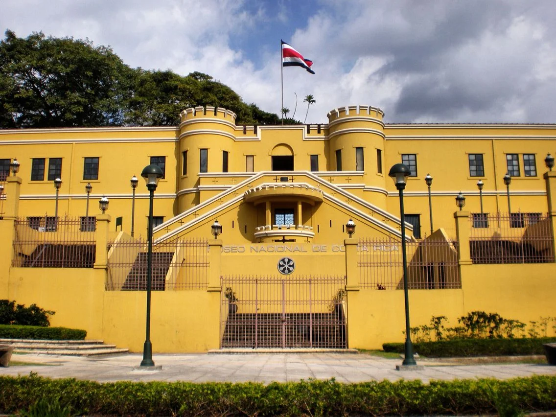 Inside, exhibits cover pre-Columbian artifacts, colonial history, and modern Costa Rica.